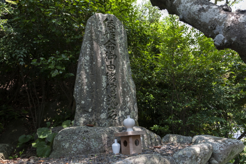 第11代垂仁天皇の皇女、倭姫命が天照大神のご鎮座されるよき地を求めてここを通過したとき、長旅の疲れを癒そうと休息した伝説の地。大きな松の根元に倭姫命が腰掛けたという岩と碑があります。